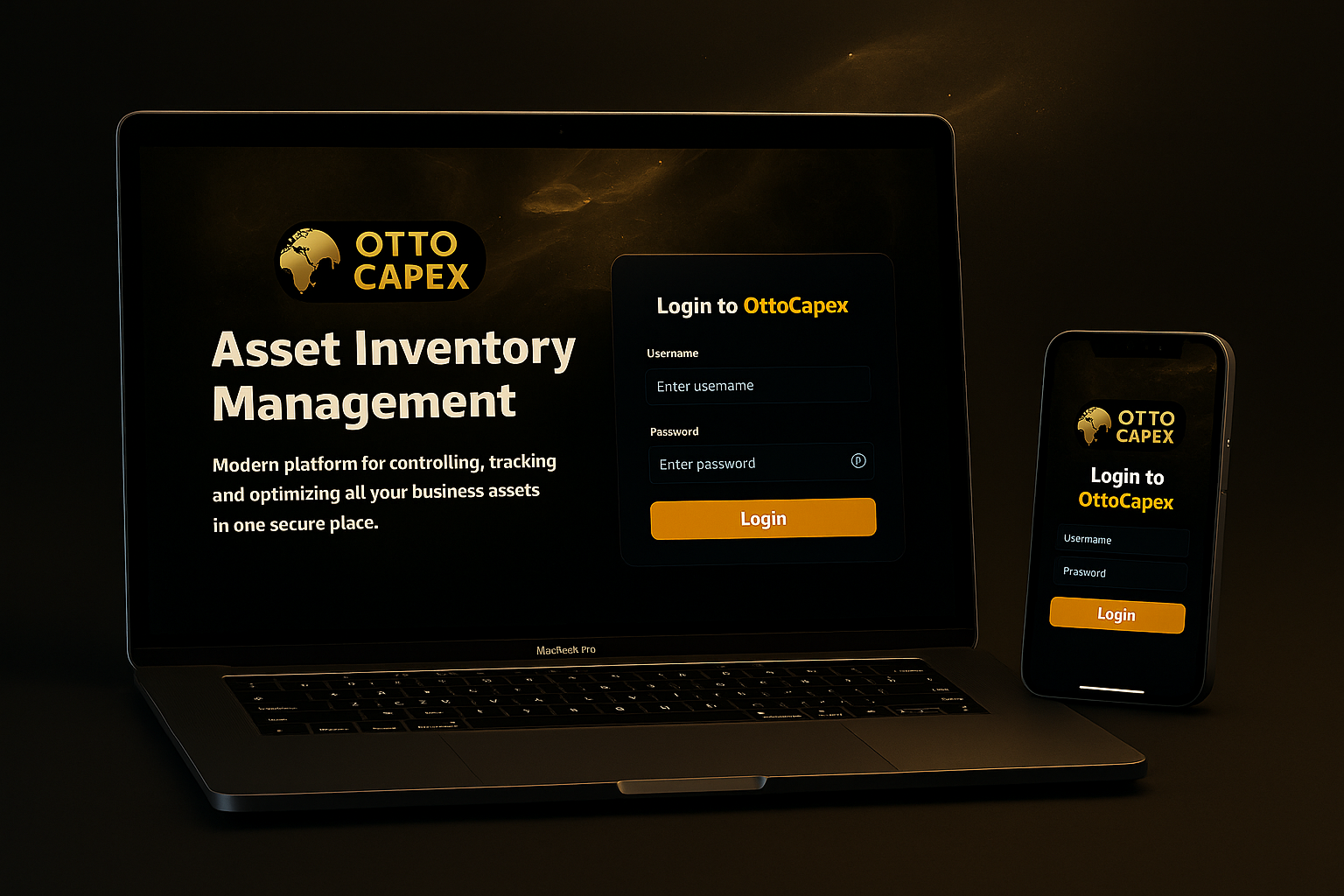 Branded, high-contrast sign-in with our gold/black theme. Designed for clarity and trust on both desktop and mobile.